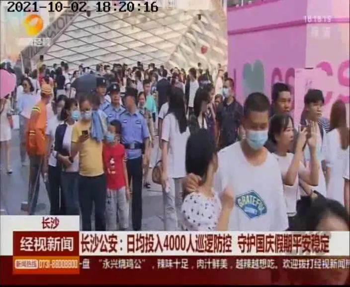 湖南经视→《长沙公安:日均投入4000人巡逻防控,守护国庆假期平安稳定》10月2日,湖南经视报道长沙警方守护国庆假期平安稳定,其中报道步行街警力全面织密巡防网。