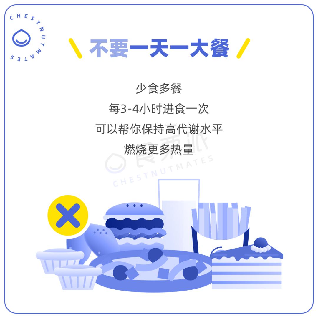 基础代谢在我们吃饭时处于高水平,随后下降。每3-4小时进食一次可以帮助我们保持高代谢水平,一整天燃烧更多热量。