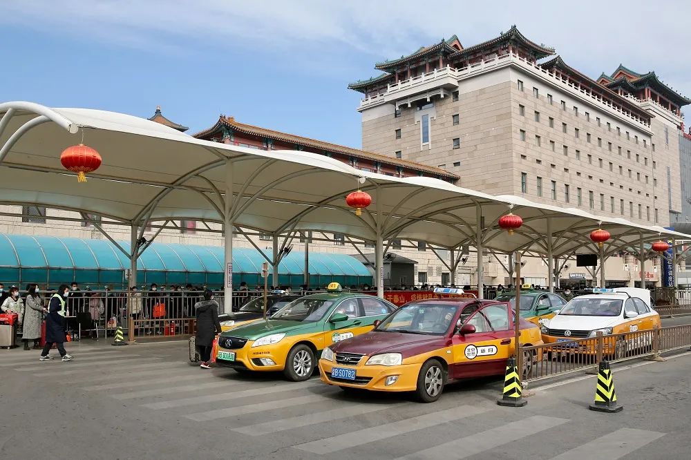▲ 图为旅客在北京西站出租车候客区排队等候乘坐出租车。(资料图片)(中国改革报、改革网特约记者 易海菲 摄)