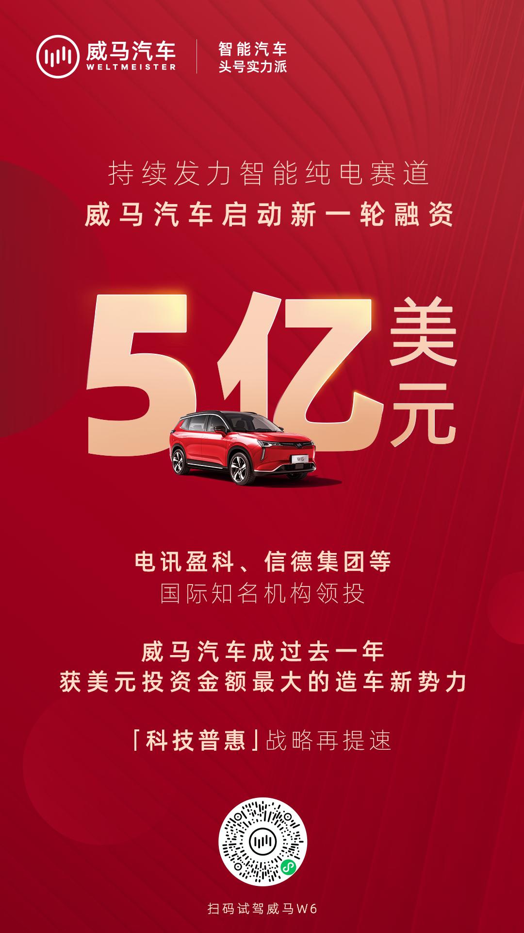 据悉,威马汽车启动新一轮融资,融资总额预计约5亿美元。其中,D1轮融资由电讯盈科有限公司和信德集团有限公司领投,参投方包括广发信德投资管理有限公司旗下美元投资机构等,融资金额超过3亿美元。随后,威马汽车将与其他数家国际知名投资机构签署D2轮融资协议。