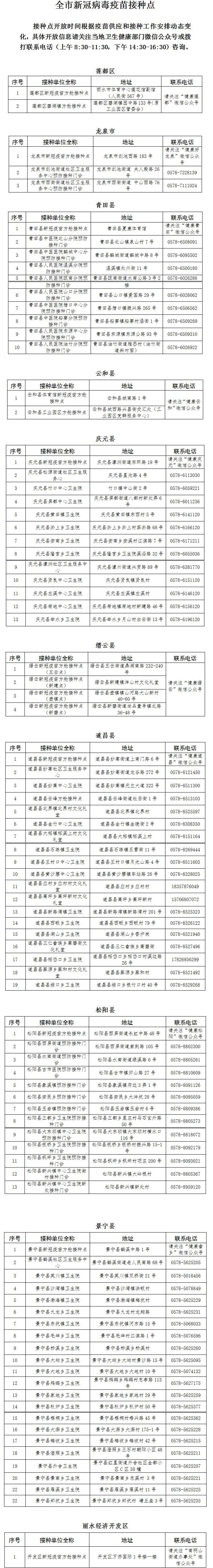 全市综合服务点莲都区: