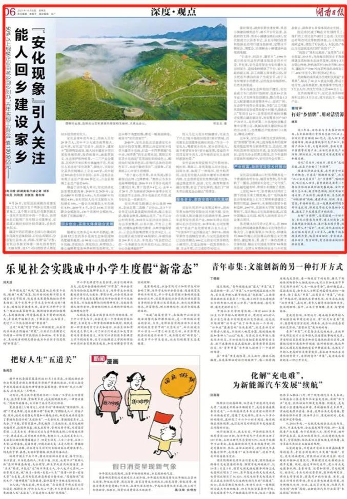 10月8日,湖南日报第六版刊发《50%以上规模企业由老乡回乡创办,去年实现工业总产值100多亿元——能人回乡建设家乡“安化现象”引人关注》,详情请看↓↓↓