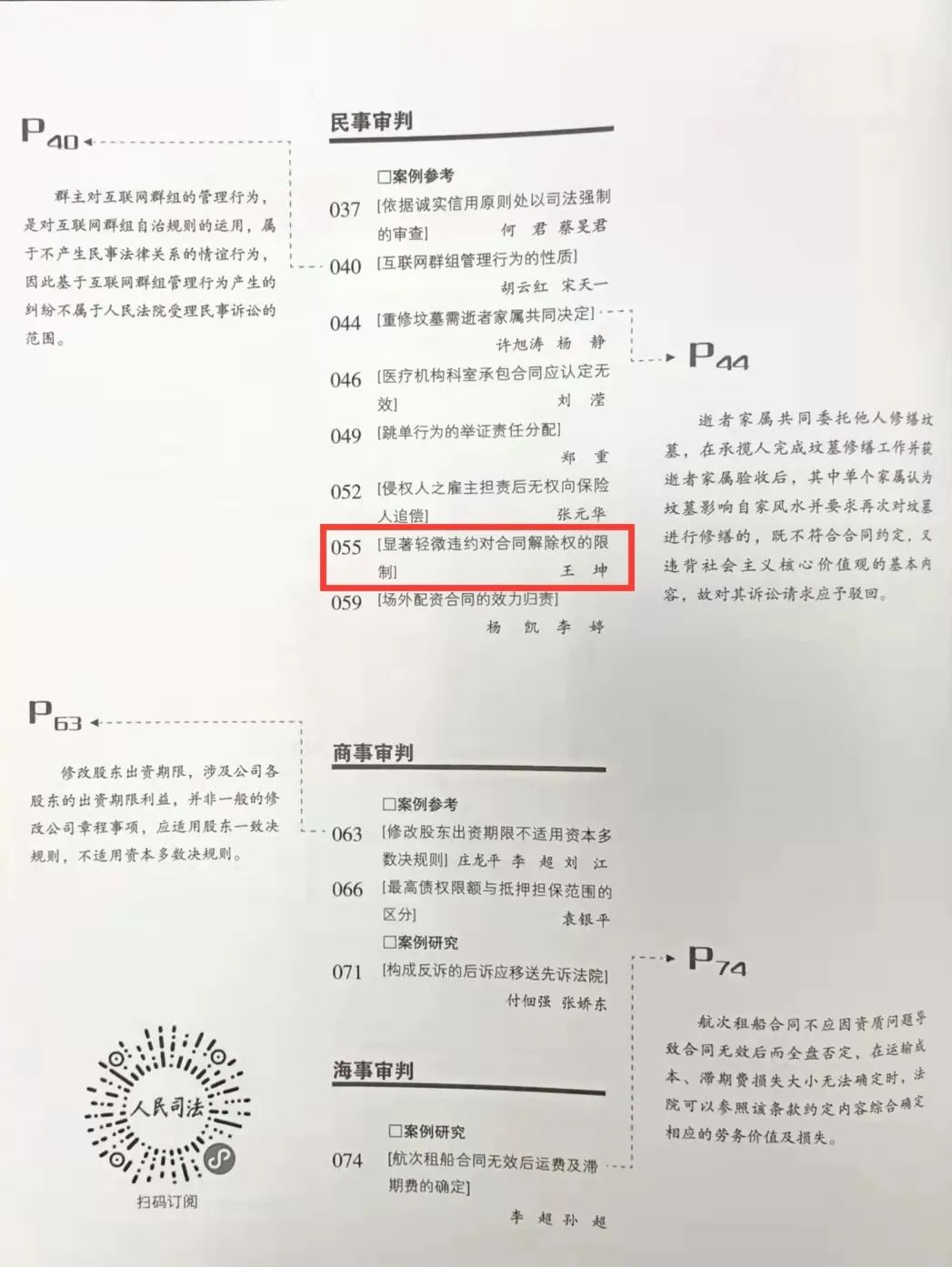 原标题:《人民司法 | 王坤:显著轻微违约对合同解除权的限制》