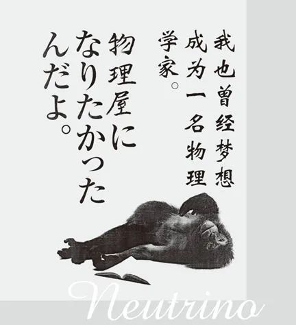 我稀里糊涂地上完了大学,总算进入了研究生院,但在物理研究方面却没打下什么基础。当时,南部阳一郎 (日本著名物理学家,2008年获得诺贝尔物理学奖)老师在大阪市立大学设立了新的理论物理研究室,于是我慕名前往南部老师门下“修炼武艺”,在那里参加了长达 3 个月的研讨会。这期间我一直住在研究室里,铺着被褥的长桌便是我的床。在 1997 年我被授予文化勋章的时候,南部老师不知怎么想起了我当年执着的样子,于是赠予我一幅画。我把这幅画放在了本章首页,画里一只黑猩猩说道:“我也曾经梦想成为一名物理学家。”