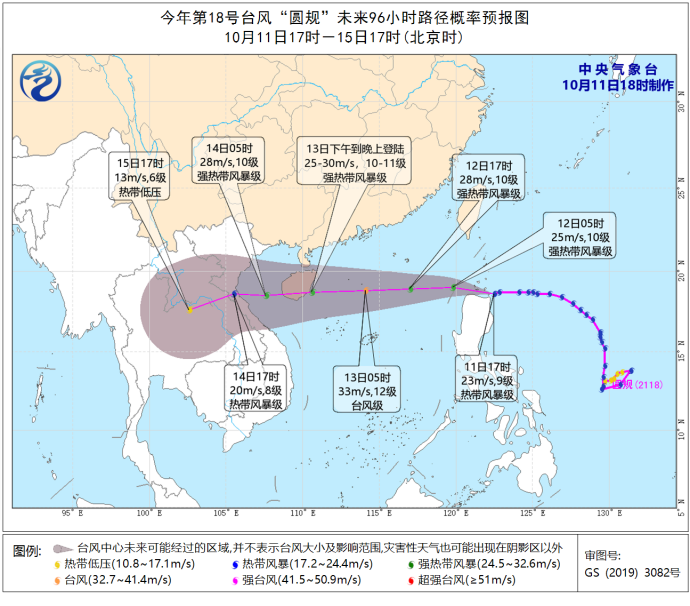 黄奕武:与“圆规”的发展路径相似的台风有不少,年份上比较近的有2005年第18号台风“达维”。它们的共同特点是,在西太平洋生成,穿越巴士海峡后在南海中北部海面向偏西方向长距离移动,影响华南大部分区域。根据最新预报,“圆规”在10月13日登陆海南,登陆时强度预计为强热带风暴级。中央气象台10月11日18时发布台风黄色预警,提示防范强降水可能引发的山洪、地质灾害。