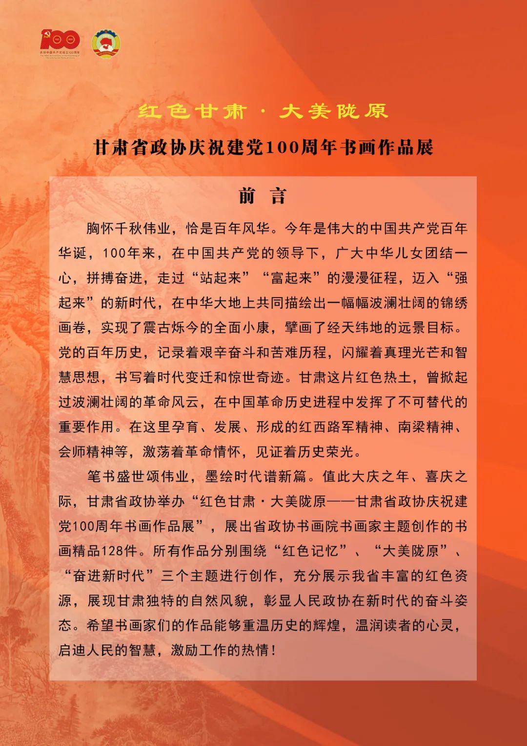 “红色甘肃 大美陇原”甘肃省政协庆祝建党100周年书画作品展(一)