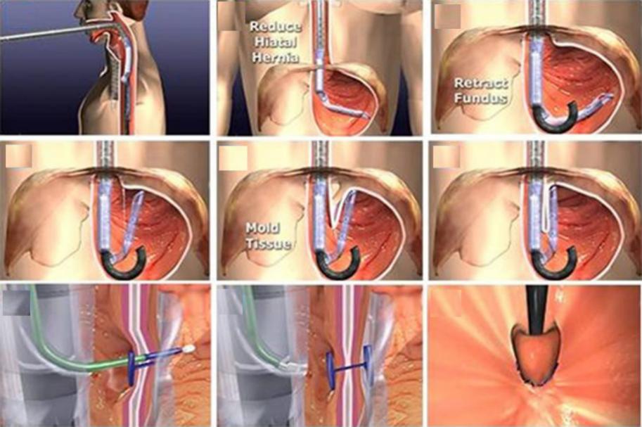 MUSE系统已在我国开展临床试验,其原理是内镜下多次、不同角度下将胃底钉合至胃食管连接处上方约3cm食管处,以形成强有力的抗反流阀瓣和恢复His角,从而达到抗反流效果。MUSE系统治疗GERD有一定疗效,但整体研究报道的病例数不多,缺乏安全性和远期预后的数据,仍需要进一步的随机对照试验(RCT)研究评估,才能在临床上推广使用。