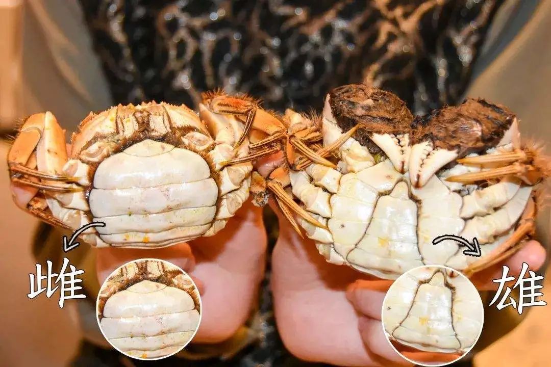 关于螃蟹的公母,大家不要盲目选择,要跟时间来决定,自古挑选螃蟹就有「九月团脐,十月尖」的说法,也就是说9月的时候,母蟹蟹黄丰满而公蟹的蟹膏尚未形成,选择母蟹。