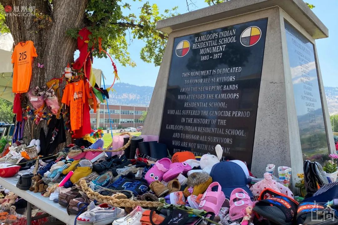 打开凤凰新闻客户端,搜索「在人间」并关注加拿大西部小镇,坎卢普斯(Kamloops) 寄宿学校旧址门前的草地上,十几个原住民孩子正在嬉戏打闹。他们身旁矗立着一座黑色纪念碑,上书碑文,悼念那些曾经遭受种族灭绝政策对待的原住民孩童。纪念碑周围摆满了色彩鲜艳的花束、童鞋和毛绒玩具。