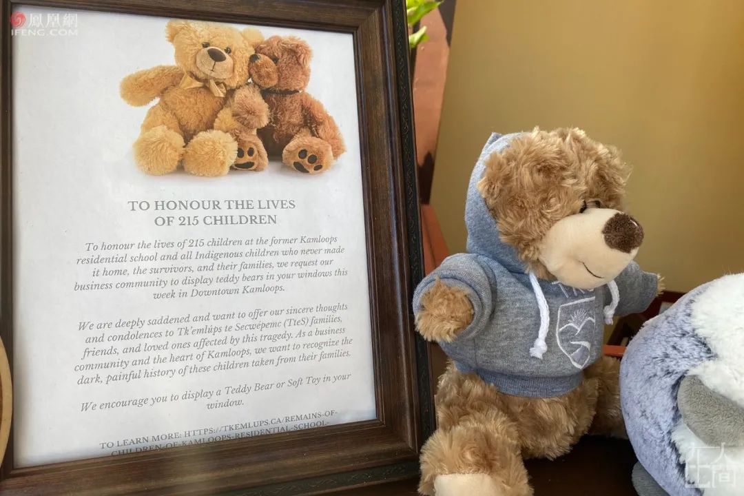 ■ Kamloops 商家通过在橱窗摆放小熊的方式纪念在寄宿学校旧址被发现的儿童。