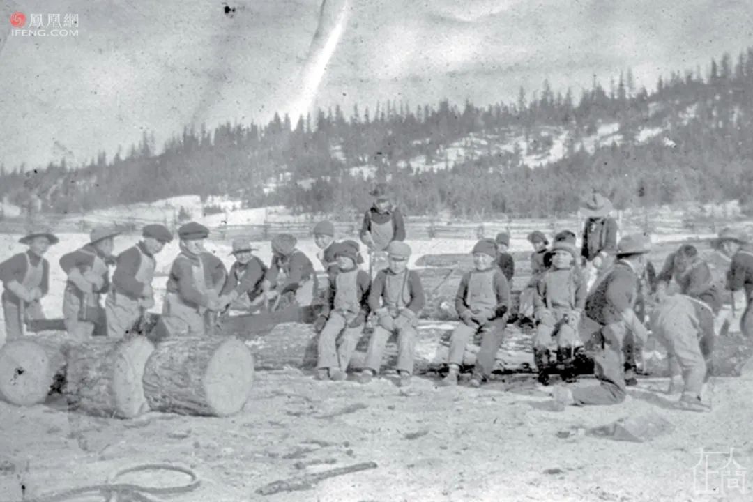 ■ 19世纪末或20世纪初,在不列颠哥伦比亚省威廉姆斯湖学校砍柴的男孩。1902年2月,一名叫邓肯·斯蒂克斯的印第安儿童在逃离学校后被冻死。(图源:《真相与和解报告》)