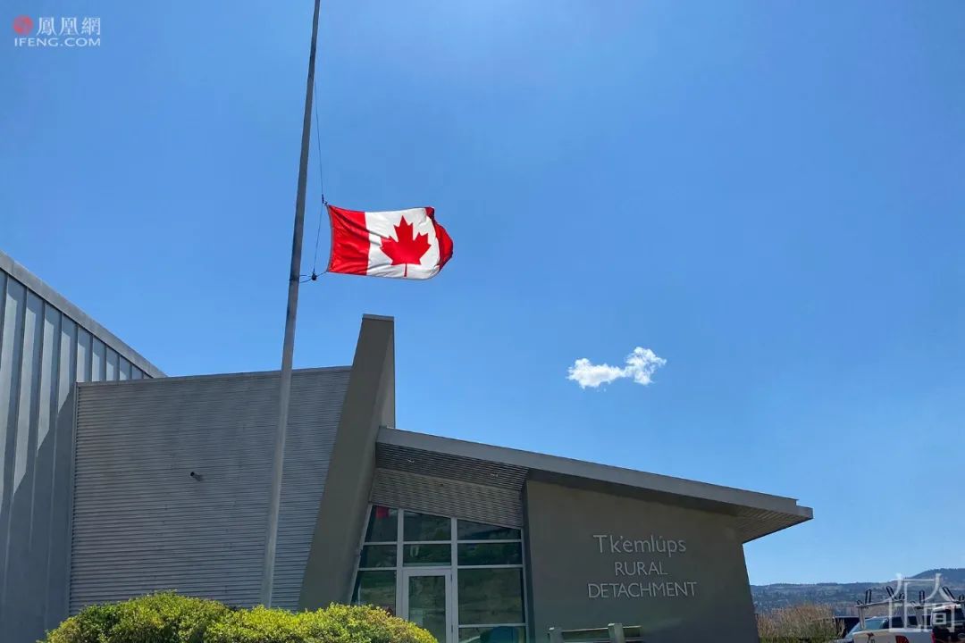 ■ TK’EMLÚPS皇家骑警为悼念寄宿学校原住民儿童降半旗。