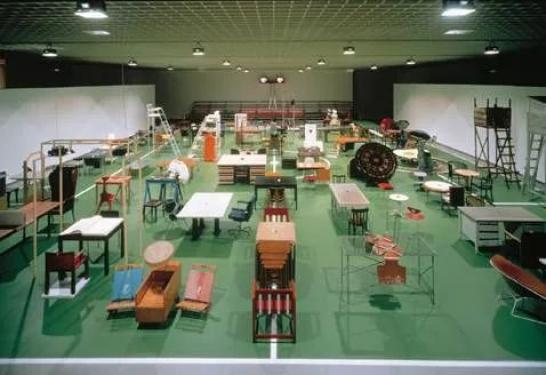 马丁 · 基彭贝尔格装置作品,《 卡夫卡快乐大结局( 美国)》( TheHappy End of Franz Kafka's America), 1994马丁1994 年的装置作品《卡夫卡快乐大结局(美国)》也是很有意味的 :像是篮球场的比赛场地上摆满了杂乱无序的桌椅,似乎象征着一个大杂烩的工作中介机构,从而阐释了卡夫卡小说里的意味。不知道有没有人说看上去就是一堆废品垃圾,各种各样的“美国”场面也出现在很多美术馆里面。而他的坏画画得痛快淋漓、毫不犹豫、极富于激情,也因为其复杂的探索和表现而难以被准确地论说,就如同画面出现的旅行者、罪犯、酗酒者、自我表现者、摇滚明星、牛仔、恶作剧者、波希米亚人、笨拙的恐怖主义者。这种复杂性模糊了艺术家的形象与定位,在身后其名声反而变得显赫起来。
