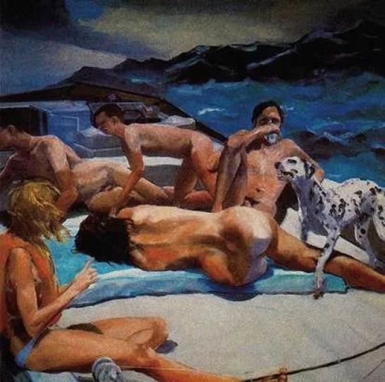 约翰·柯林画作,《圣雷莫》(San Remo),2013有趣的是,到20世纪90年代末,柯林以其技艺娴熟主题媚俗的作品,获得了艺术界的好评和商业上的成功,而2016年徍士得现代与当代艺术品拍卖夜,约翰·柯林的Nice‘ N Easy,以大大高于估价的12,007,500美元售出,多少反映出艺术家的这类绘画具有良好的商业性。