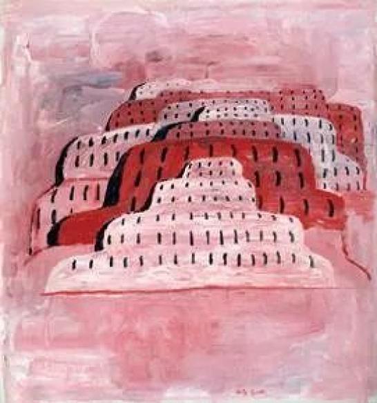 A·R·彭克画作,《远景》(Landscape — Remote),2011再比如意大利超前卫的艺术家恩佐·库奇(Enzo Cucchi,1949— )。库奇作画时充满力量与速度,因此被别人称为老虎,而他自己好像也并不反感这样的称呼。这比喻听起来就知道,库奇画画就好像老虎捕食。全凭感觉画画的库奇也认为所有的行为都能穿越其他艺术家的身体、精神和世界观。