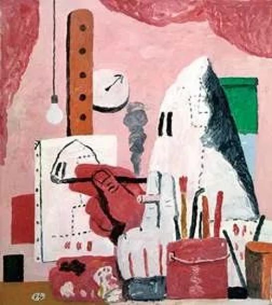 菲利普 · 古斯顿画作,《画室》, The Studio, 1969因此,有美就有丑,有好就有坏,有明白就有暗黑。在人类的思想史中,二元的认知和逆反的思维贯穿始终,也形成了人类的各种对立行为,如今都在艺术中呈现了出来。总而言之,在西方文化中,则强调个人主义和自我,因此艺术常常以否定的姿态出现,突出了个人特殊经验的表达,这构成了西方当代艺术的一种特质;在东方,强调了集体主义的意识,因此艺术多是以继承发扬的主张亮相,形成集体经验的和谐面貌, 自有东方艺术的一种秉性。