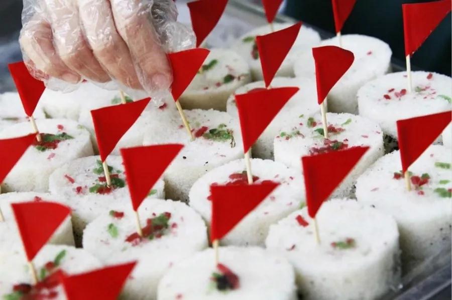 重阳糕面上插上小旗