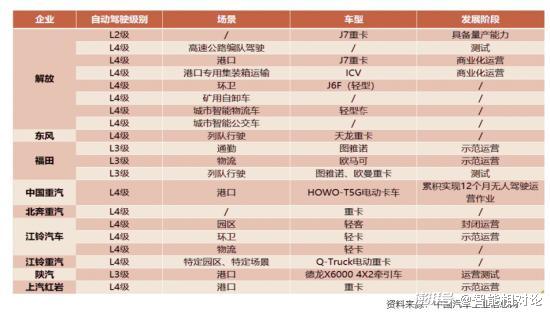 根据中国汽车工业信息网的统计,目前主要重卡企业生产的自动驾驶重卡当中,除少部分在港口场景中已实现量产并商业化运营之外,在干线物流场景,大部分仍处于测试阶段。