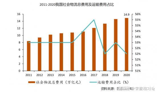 京东、美团领投嬴彻科技,押注干线物流自动驾驶的未来,看好的是整个物流行业广阔的市场空间。随着经济和贸易的快速发展,带动了货运需求增长,物流行业已成为我国重要的现代服务业。根据国家统计局数据,2020年中国社会物流总费用为14.9万亿元,占GDP比重达14.67%。