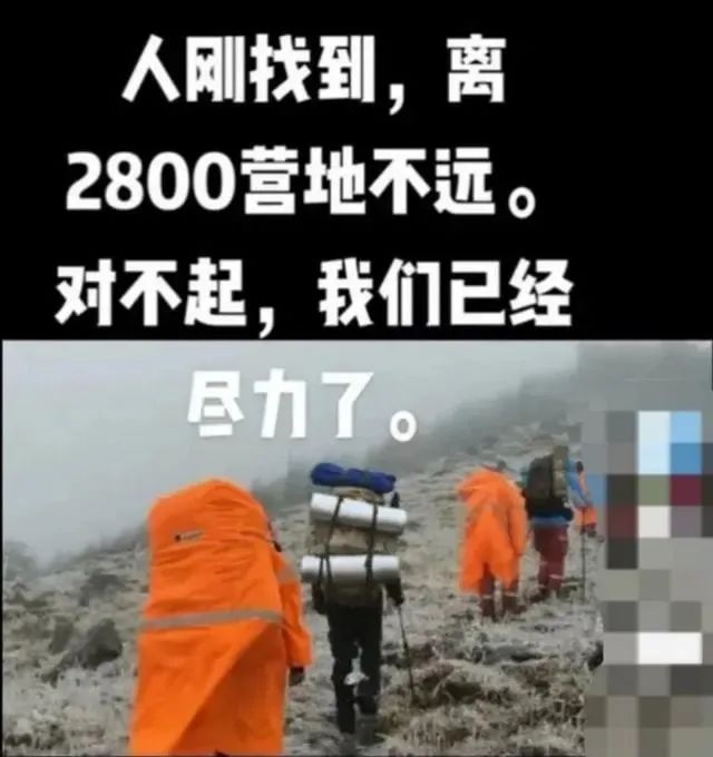 10月10日17时许,救援人员在鳌太线南天门下缓坡100米的地方发现一具遗体,确认系53岁的吴某,疑因失温遇难。