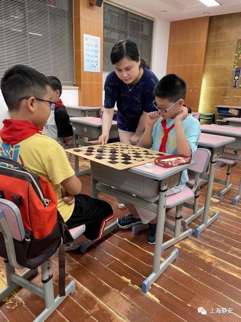 作为沪上唯一的一所以棋牌活动为办学特色的小学,小棋童们自然对下棋打牌多一份偏爱。”据校长朱睿介绍,在课后服务三个时段里,除了第一时段“学习时刻”,学生们以静心做学科作业为主外,第二时段“自主时刻”、甚至第三时段“温馨时刻”,多数学生都热衷于在方寸棋盘上斗智斗勇、捉对搏杀。