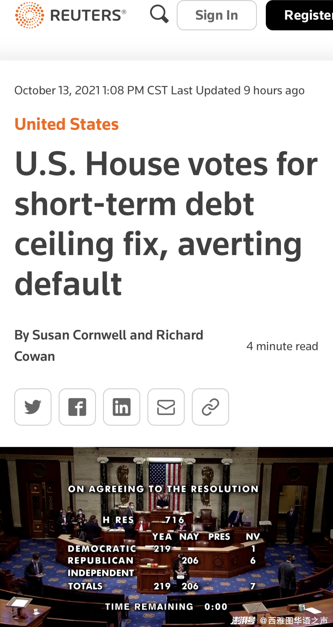 2、美国会众议院表决通过暂时提高政府债务上限法案