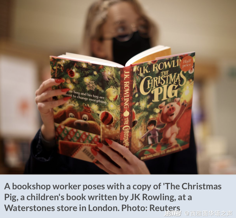 【纽约时报】英国作家J.K.罗琳于昨日发布了一本关于一个小男孩和他的小猪玩具的新书《圣诞猪》。报道称:“《圣诞猪》是一部温暖人心、引人入胜的冒险故事,讲述了一个孩子对他最珍爱的东西的爱,以及他愿意走多远来找到它。”