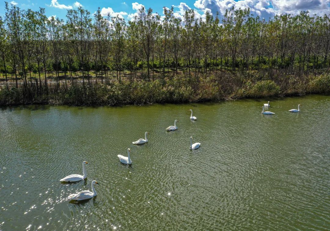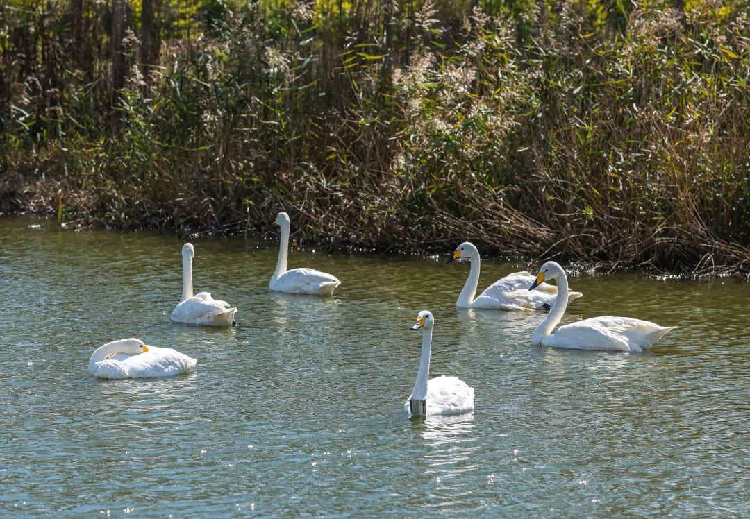 据了解,今年保护区内有13只大天鹅因伤病等原因,滞留荣成,其中8只经救助后,放养在天鹅湖,5只因失去野外生存能力而被室内圈养。此次回迁的3只大天鹅抵达天鹅湖后与滞留放养的8只大天鹅汇合相聚,为秋日荣成增添着浪漫的艺术气息。