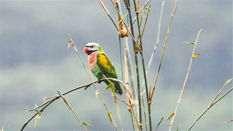 绯胸鹦鹉若要提名雨林鸟类中的“色彩搭配大师”,绯胸鹦鹉绝对不负众望。作为海南唯一一种野生热带鹦鹉和国家二级保护动物,绯胸鹦鹉极为罕见,近年来唯一一笔确信记录是在海南热带雨林国家公园鹦哥岭片区。