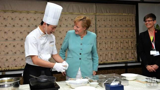 7年前的成都之行,默克尔来到成都神仙树农贸市场买豆瓣酱、尝辣椒面,亲自选购做川菜的食材,并向菜市摊位老板们询问菜的种类、新鲜度等,随后又到老牌川菜馆“成都印象”品尝宫保鸡丁,感受了一把烹饪川菜的魅力。