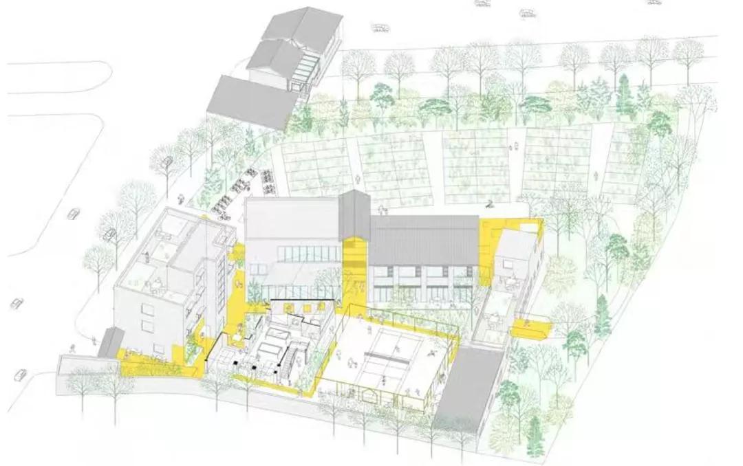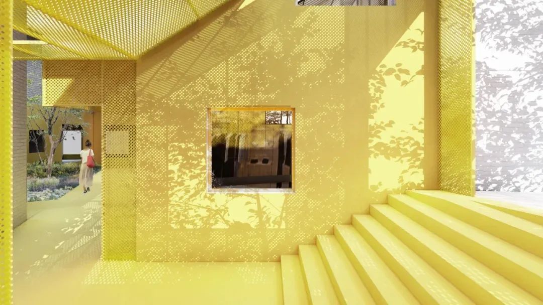 在2021年中国·成都首届社区美空间创意设计全球征集活动“十佳社区美空间优秀设计方案”评审会上,该项目设计方案的主创团队广州全体建筑设计有限公司有关负责人介绍道,该方案借鉴了传统器物修复“金缮”的思路,在现有建筑之间“卡卡角角”之中,剥离出被时间掩盖的“无用空间”,将这些“负空间”转换成为连接两个院子的通道。