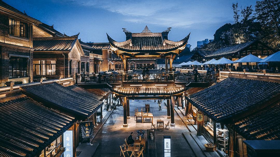 天府之村▪成都小院面积约1000平方米,引入社会资本天府之村与翡翠城社区携手为辖区企业、在地居民开展对外交流、亲子活动及文化沙龙等项目,让竹编艺术与现代生活碰撞、让非遗文化与时代新风交融。让天府文化真正回归到社区居民身边。形成"创新、创造、优雅、时尚、乐观、包容、友善、公益"的天府文化内涵的社区美空间。特色内容有:体验中国蜀绣、成都竹艺、盖碗茶非遗文化。锦官驿街道水井坊社区