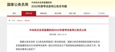 2022年度考试录用公务员招考简章》