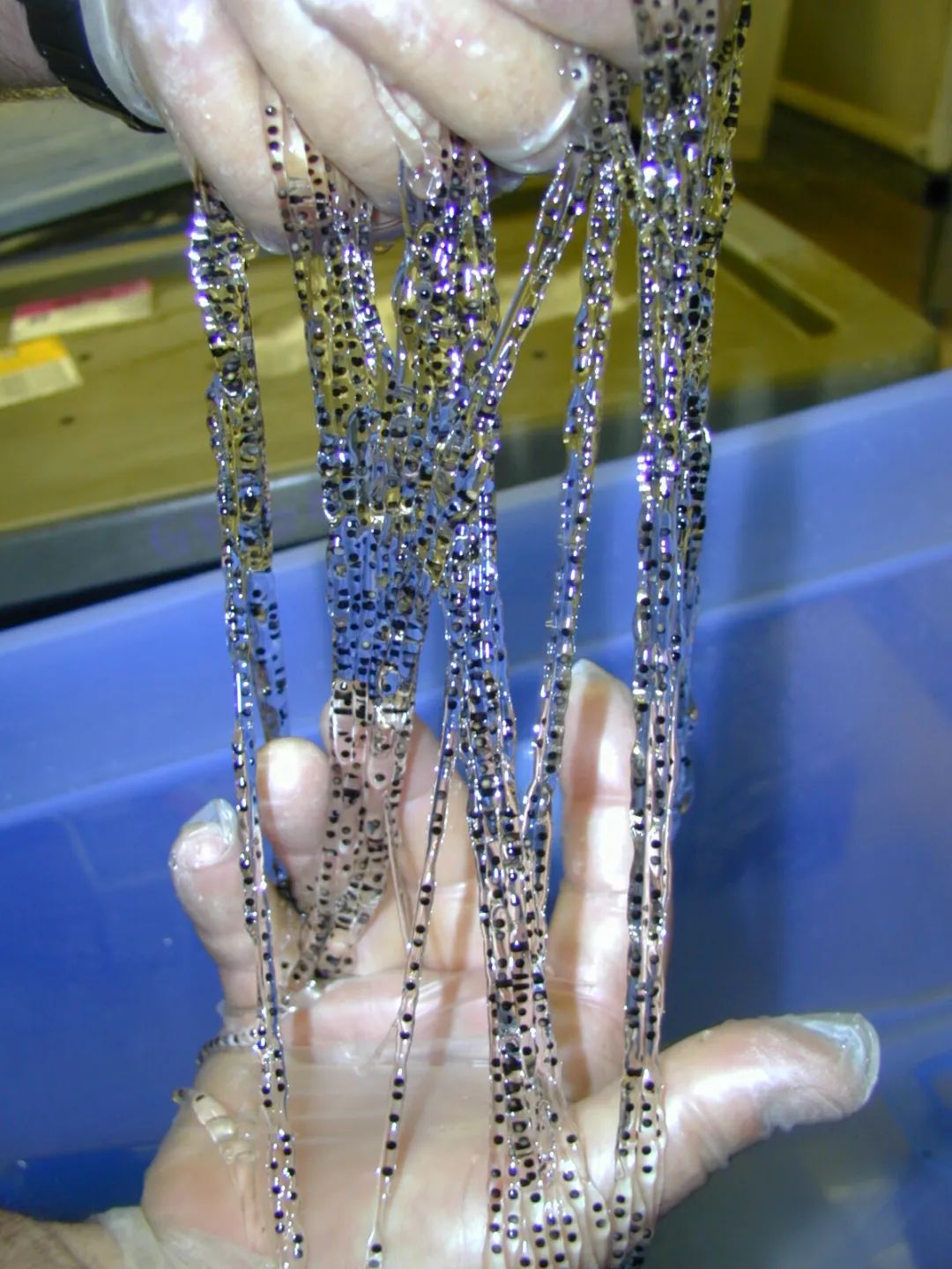 甘蔗蟾蜍的卵,每一只甘蔗蟾蜍每次产下的卵都数以千计 图/wikipedia为了验证这种行为是甘蔗蟾蜍普遍拥有的习性,还是澳大利亚的甘蔗蟾蜍所特有的习性,科学家做了一系列实验。最开始是从澳大利亚和南美洲那收集甘蔗蟾蜍,并进行繁殖,培育出刚孵化的小蝌蚪和成熟一点的大蝌蚪,然后将大蝌蚪与小蝌蚪放在一起,结果发现澳大利亚的甘蔗蟾蜍蝌蚪吃掉小蝌蚪的概率是南美洲亲戚的2.6倍。在进一步的实验中,科学家使用了两个相同的容器,一个容器中装有卵,另一个则是空的。澳大利亚蝌蚪主动游向卵的概率是它们游向空容器概率的30倍;而南美洲甘蔗蟾蜍蝌蚪游向两者的概率是相等的。最后的研究则发现,澳大利亚甘蔗蟾蜍的卵发育时间比南美洲亲戚的卵发育时间短得多——提前孵化才能变成猎人而不是猎物。