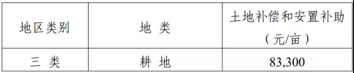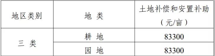 土地补偿和安置补助按《惠州市人民政府关于公布实施征收农用地区片综合地价的公告》(惠府公〔2021〕4 号)规定的补偿标准执行。具体见下表: