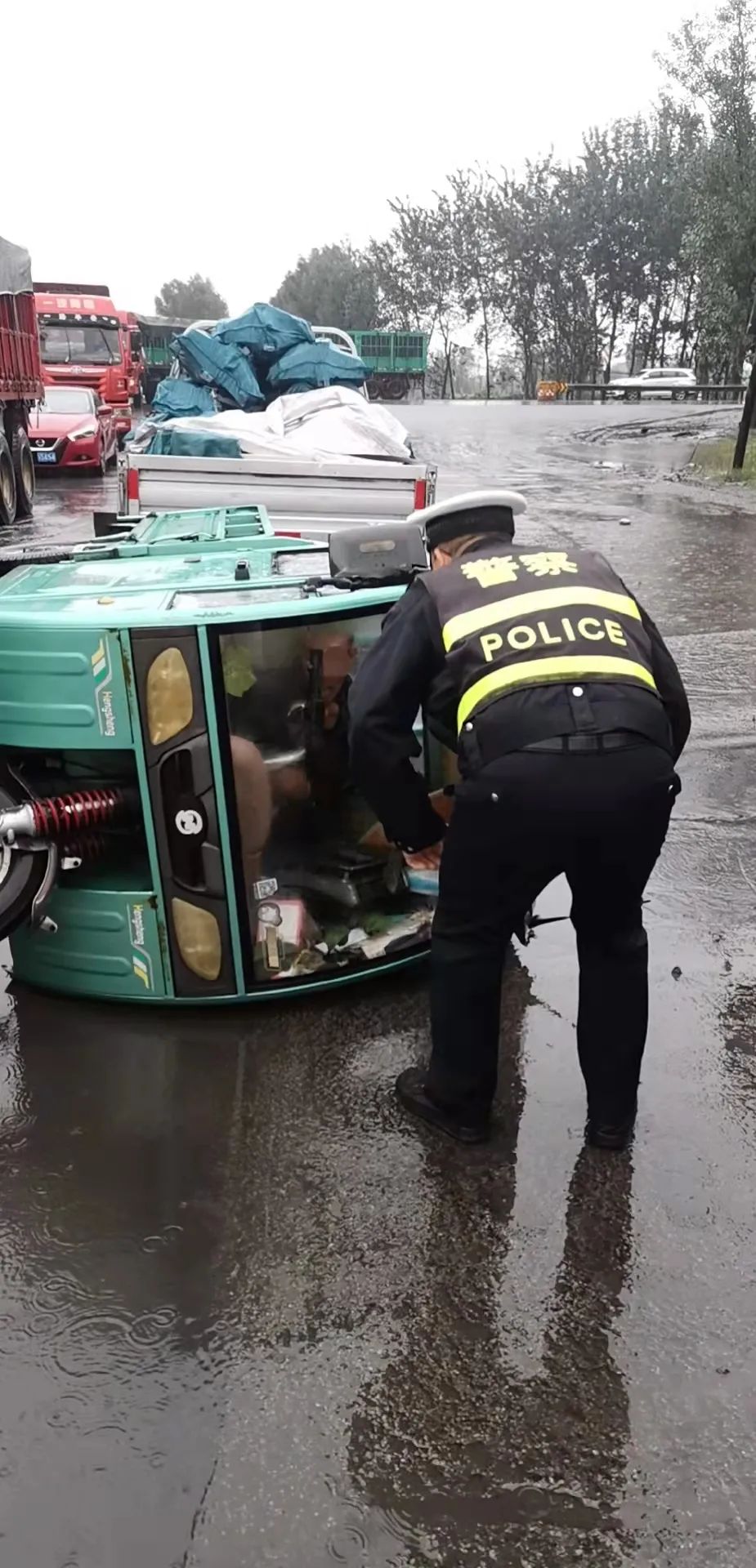 【我为群众办实事】巡逻途中遇侧翻三轮车,交警紧急救助