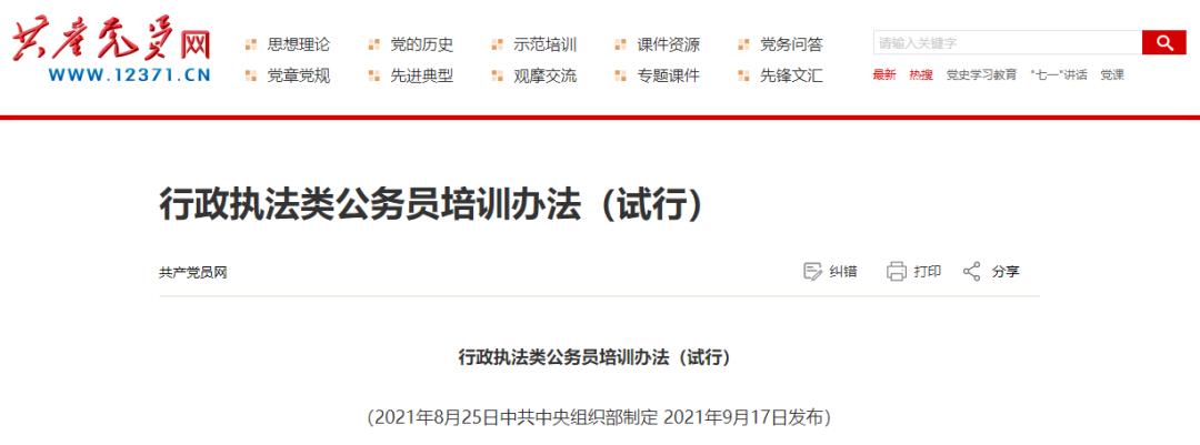 行政执法类公务员培训办法(试行)(2021年8月25日中共中央组织部制定 2021年9月17日发布)