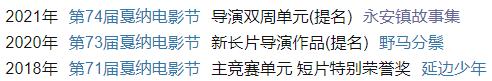 职业生涯前三部电影(两部长片一部短片),三次入围戛纳。