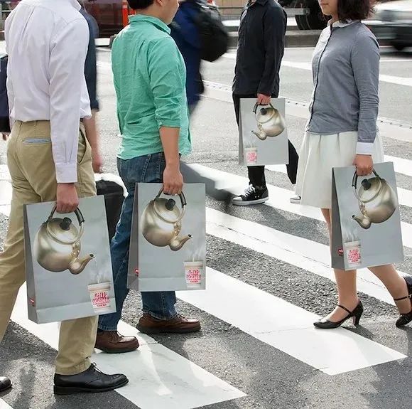 日清的周边产品同样也离谱到让人啧舌。“不管发生什么,我先吃个面”短袖和“随时随地都能泡”的手提袋,巧妙地设计带来的视觉欺骗感,让人拍手称绝,顺便说一句“不愧是你,日清”。