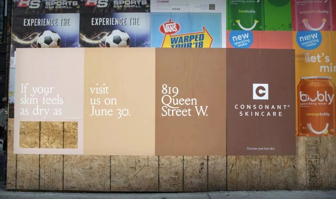 这个护肤品牌可谓是将“简约”做到了极致,就地取材在节省广告费的同时,新颖的设计还能吸引人们的注意力。