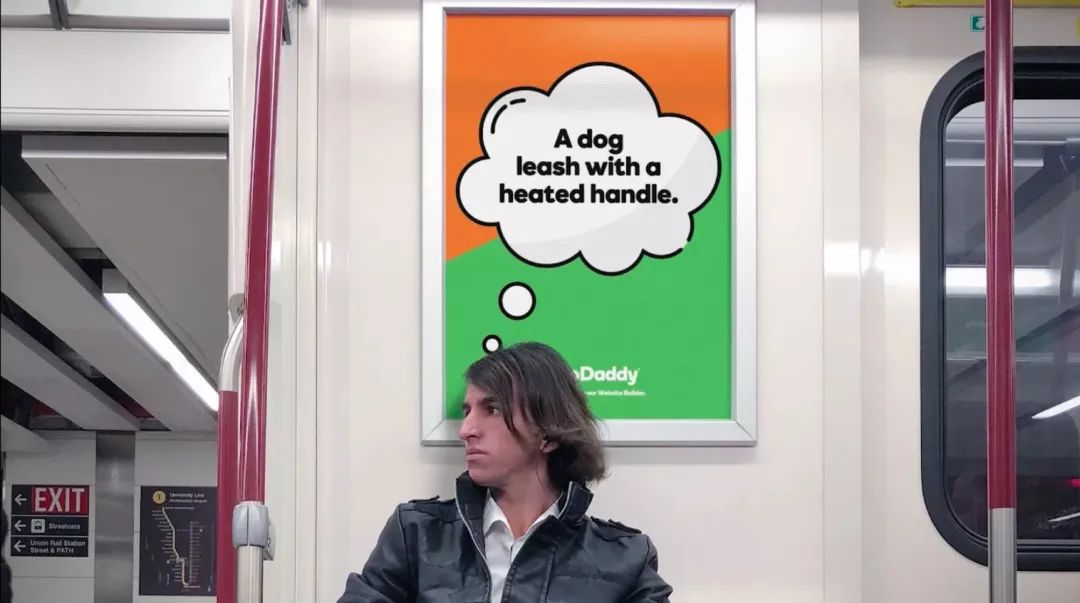 以往的护肤品都会请明星代言,但Consonant秉承着有墙就能打广告的原则,将创意发挥到了极致。GoDaddy地铁上的小创意