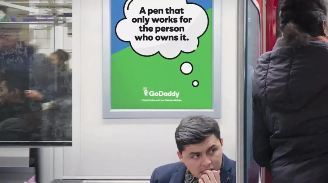 GoDaddy作为一家注册网站的公司,为了吸引更多的客户,承包了20多条地铁来打广告。