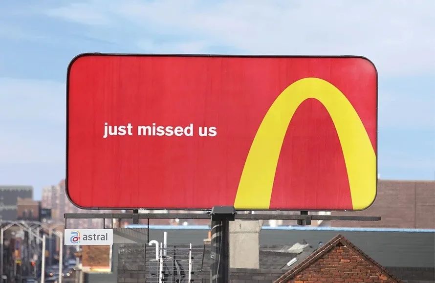 麦当劳可谓是户外广告届的翘楚,那些精彩绝伦的户外广告中,它就占据了半壁江山。将logo进行了简单的拆解,标志摇身一变就成了指路牌,创意感十足。