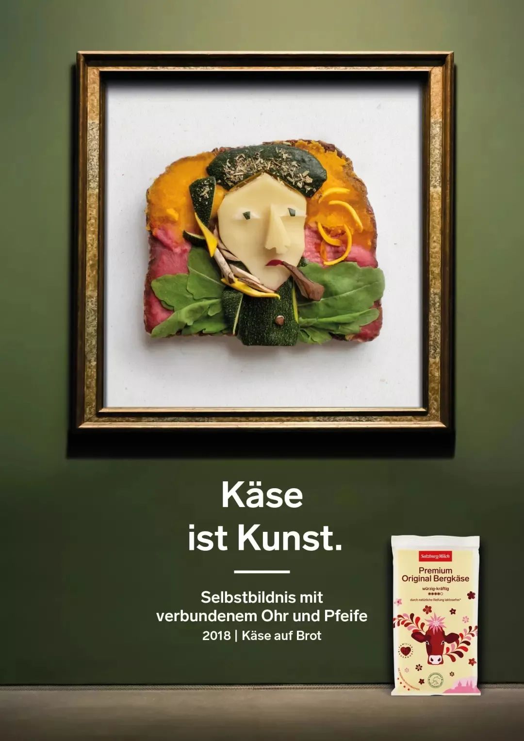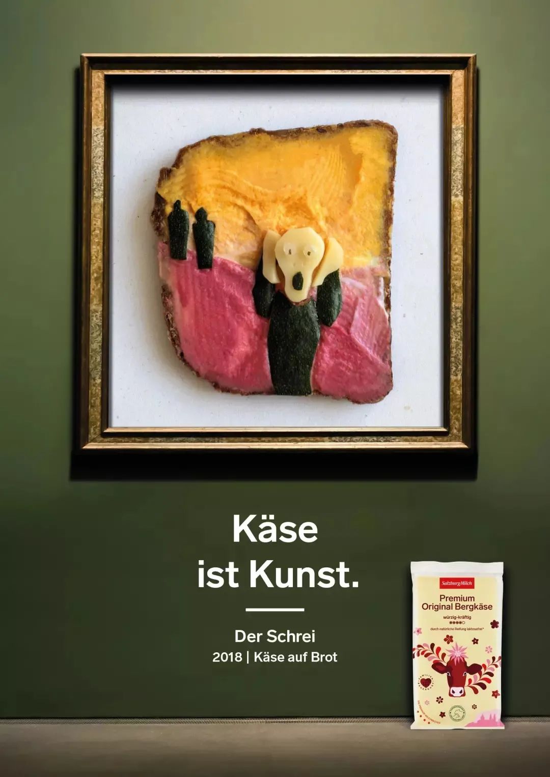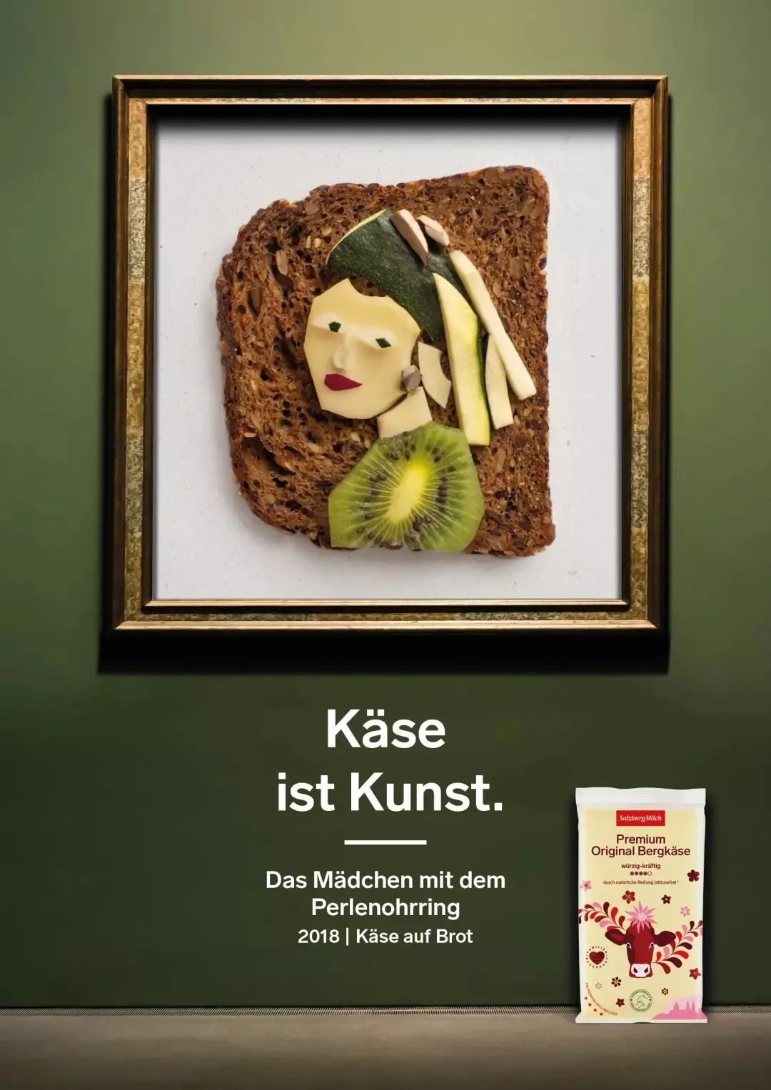 奶酪面包广告SalzburgMilch作为著名奥地利乳制品制造商,坚信“芝士就是艺术”于是他们用蔬菜、面包、水果和酱汁作出了这组特别的世界名画。