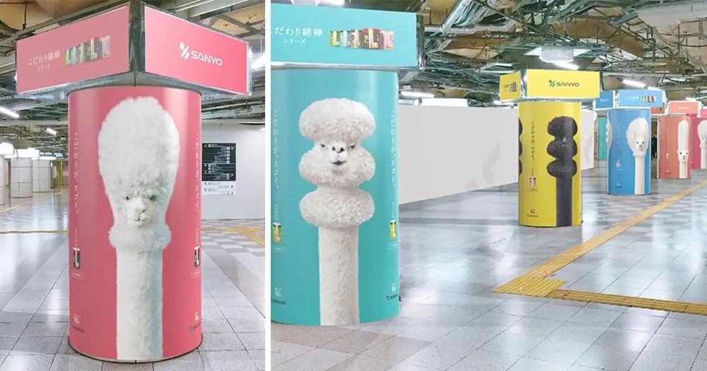 此外,SANYO还特别在大阪站前的地下道东广场张贴了平面广告。社畜在通勤路上看到这一只只造型各异的草泥马,心情也能舒畅几分。