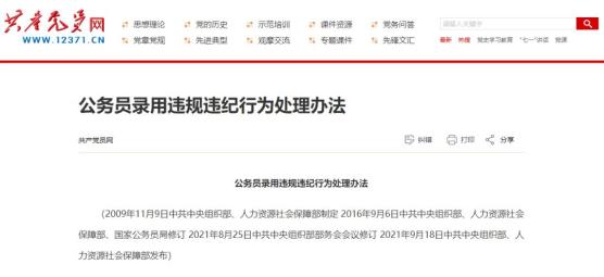 公务员录用违规违纪行为处理办法(2009年11月9日中共中央组织部、人力资源社会保障部制定 2016年9月6日中共中央组织部、人力资源社会保障部、国家公务员局修订 2021年8月25日中共中央组织部部务会会议修订 2021年9月18日中共中央组织部、人力资源社会保障部发布)