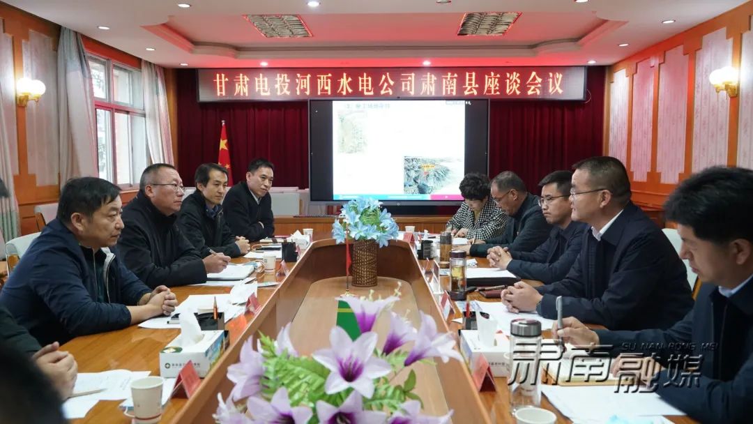 10月19日,甘肃电投河西水电公司肃南县座谈会议召开,县委书记陆思东主持会议并讲话,县委副书记、县政府县长钟向辉,甘肃电投河西水电公司董事长闫小淇出席会议。县委常委、县政府常务副县长黄敬林,县委常委、县委办主任陈海君,甘肃电投河西水电公司总经理高建军、副总经理周国伟参加会议。