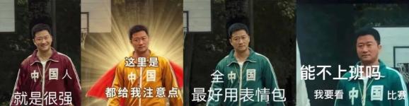 原本平平无奇的装扮,却因胸前硕大的两个字“中国”,产生了创作空间。通过加上强烈表达态度的内容,以“中国”为题扩写句子,是网友们屡试不爽的表情包加工大法。
