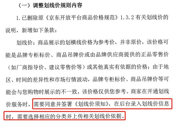 其中增加商家在开通“划线价”服务时,需要同意并签署《划线价须知》,在后台录入划线价信息时,需要选择相应的分类并上传相关“划线价”依据。