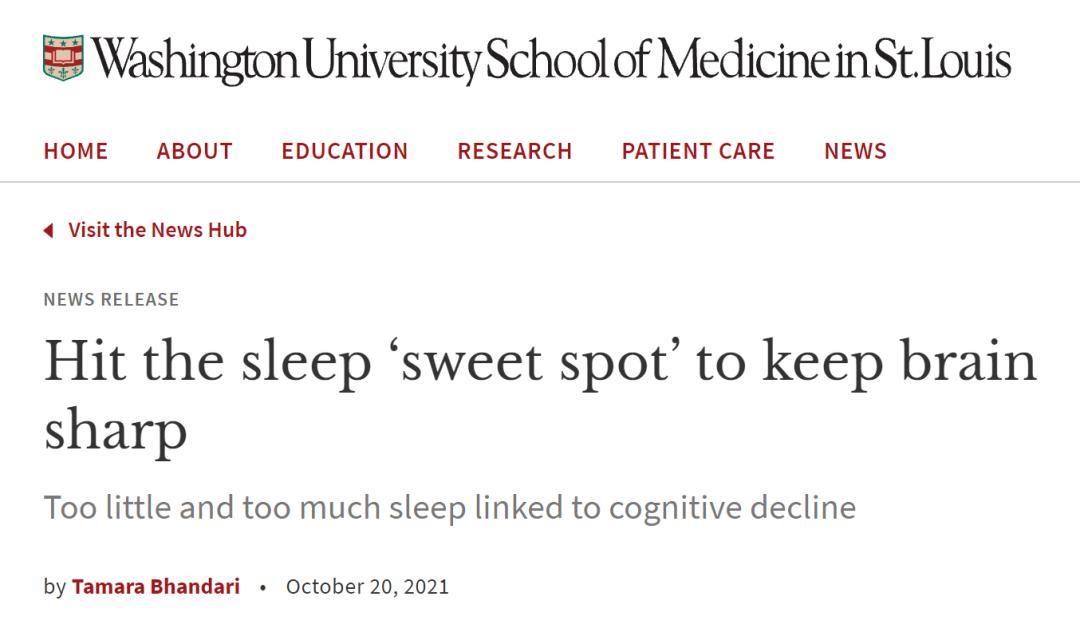 圣路易斯华盛顿大学医学院官网10月20日消息就像生活中许多其他美好的事情一样,适度的睡眠是最好的。一项针对老年人的多年研究发现,即使考虑到早期阿尔茨海默病的影响,睡眠时间短或长的人都比睡眠时间适中的人认知能力下降得更严重。这项研究是由圣路易斯华盛顿大学医学院(Washington University School of Medicine in St. Louis)的研究人员领导的。